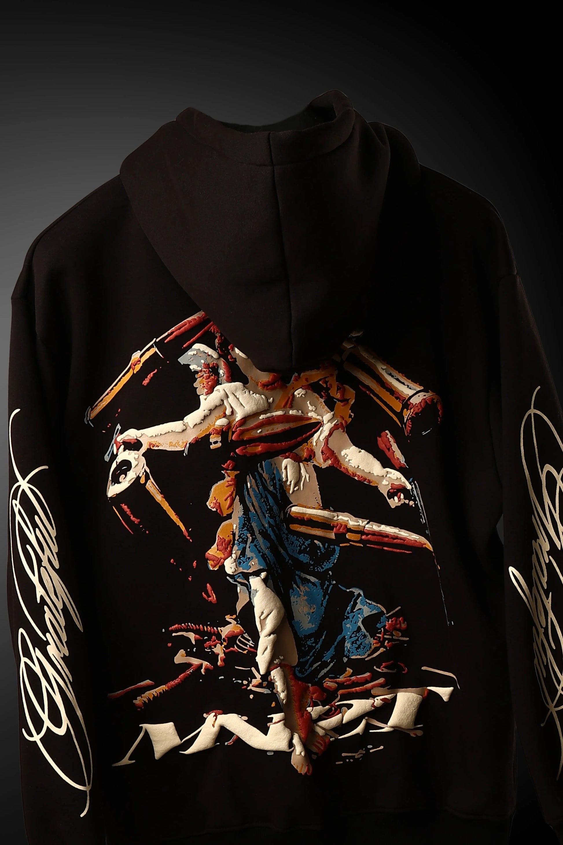 Screen print, puff print… all working together like a shield.