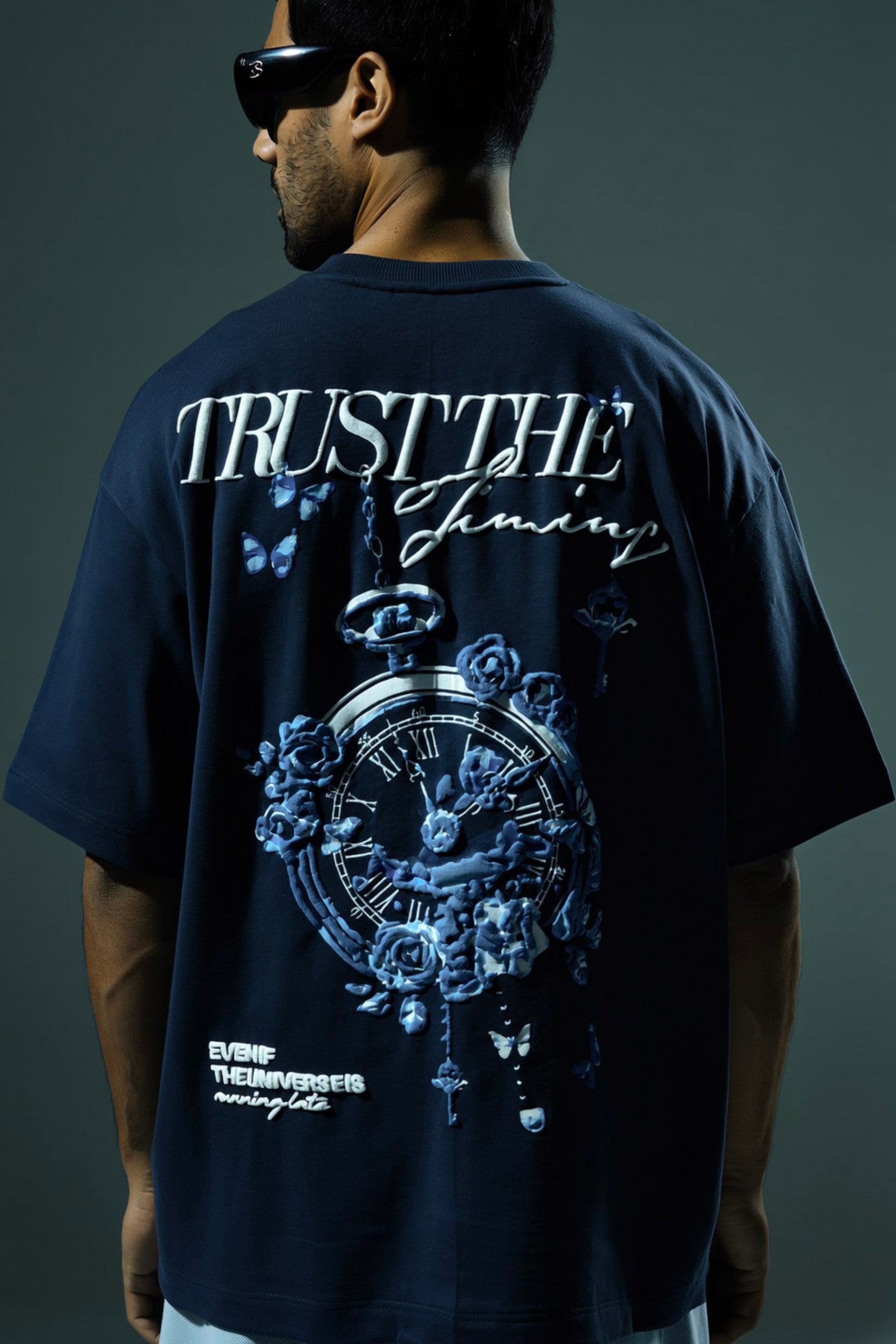 The Cosmic Clock tee makes sure you're always on the clock, with "Trust the timing" boldly printed on the back, paired with a clock that keeps you in check. Even if the universe is running late, you’re in perfect sync. The MNFST logo on the front adds that extra touch of manifestation, while the mix of puff and screen prints brings it all together.
